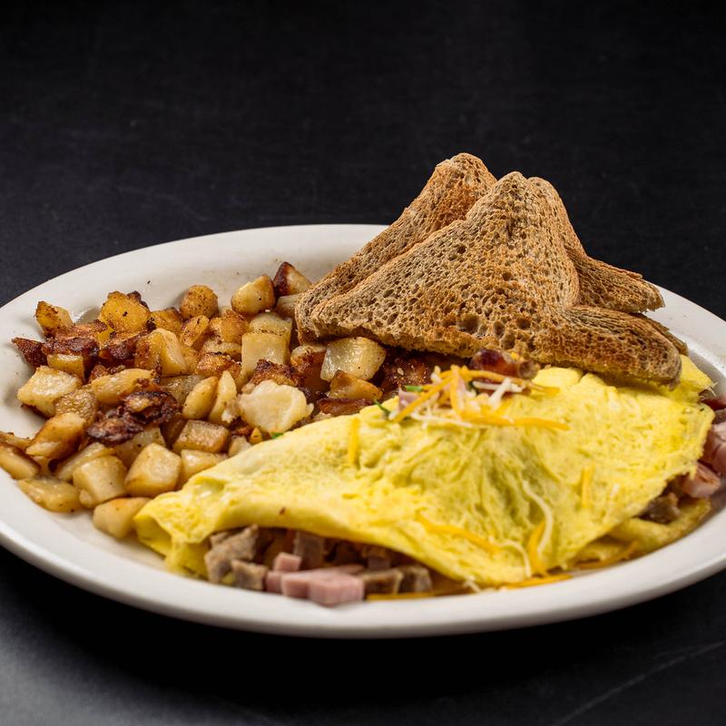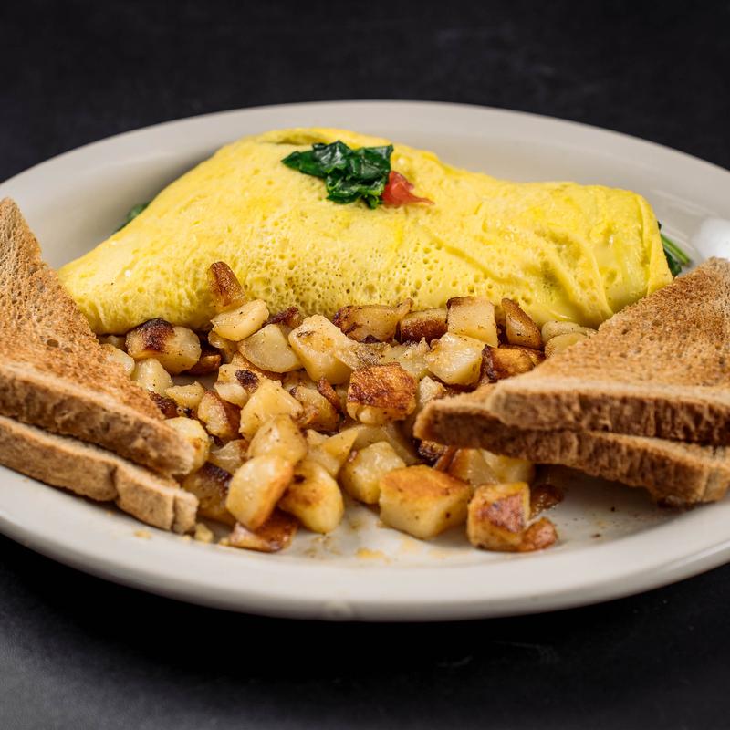 Farm fresh egg omelette served with homefries & choice of toast | Egg whites additional cost